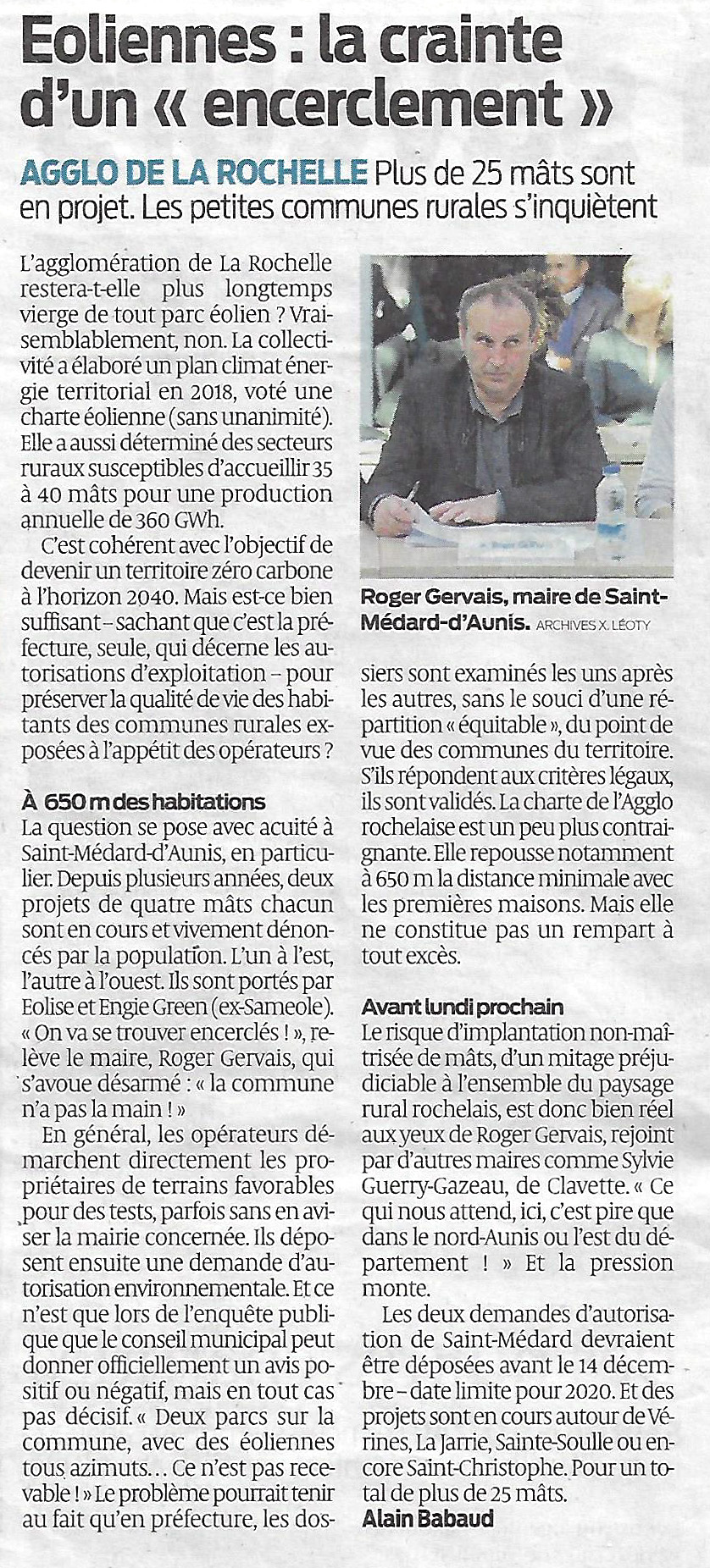 ♦ €oliennes : la crainte d’un encerclement à La Rochelle : Alain Babaud, Sud-Ouest du 9 décembre 2020